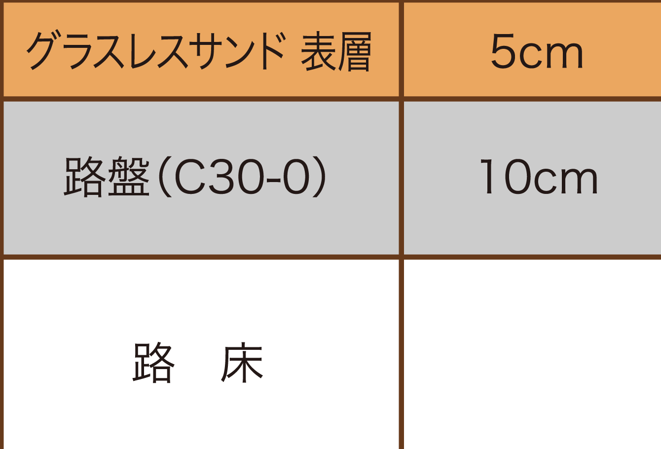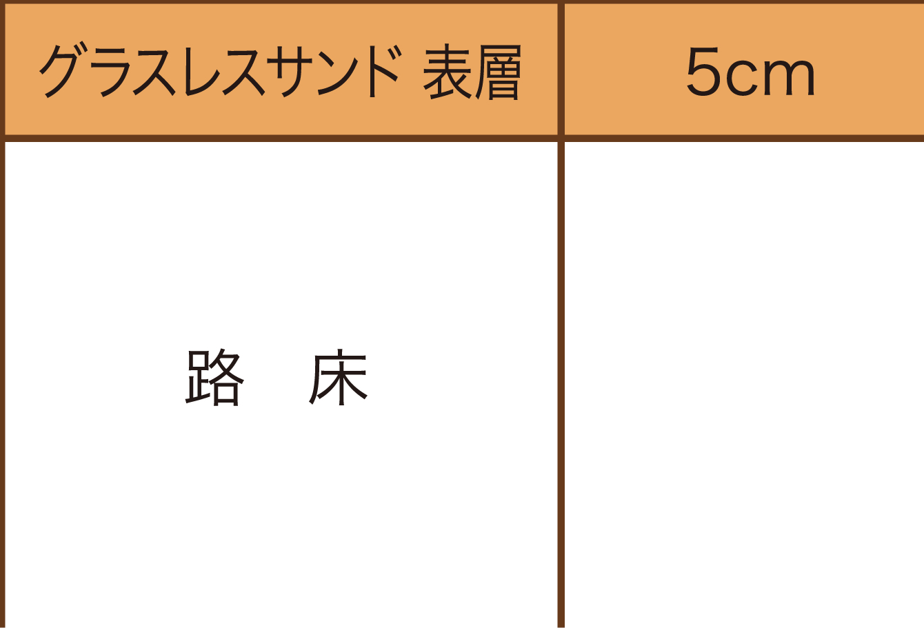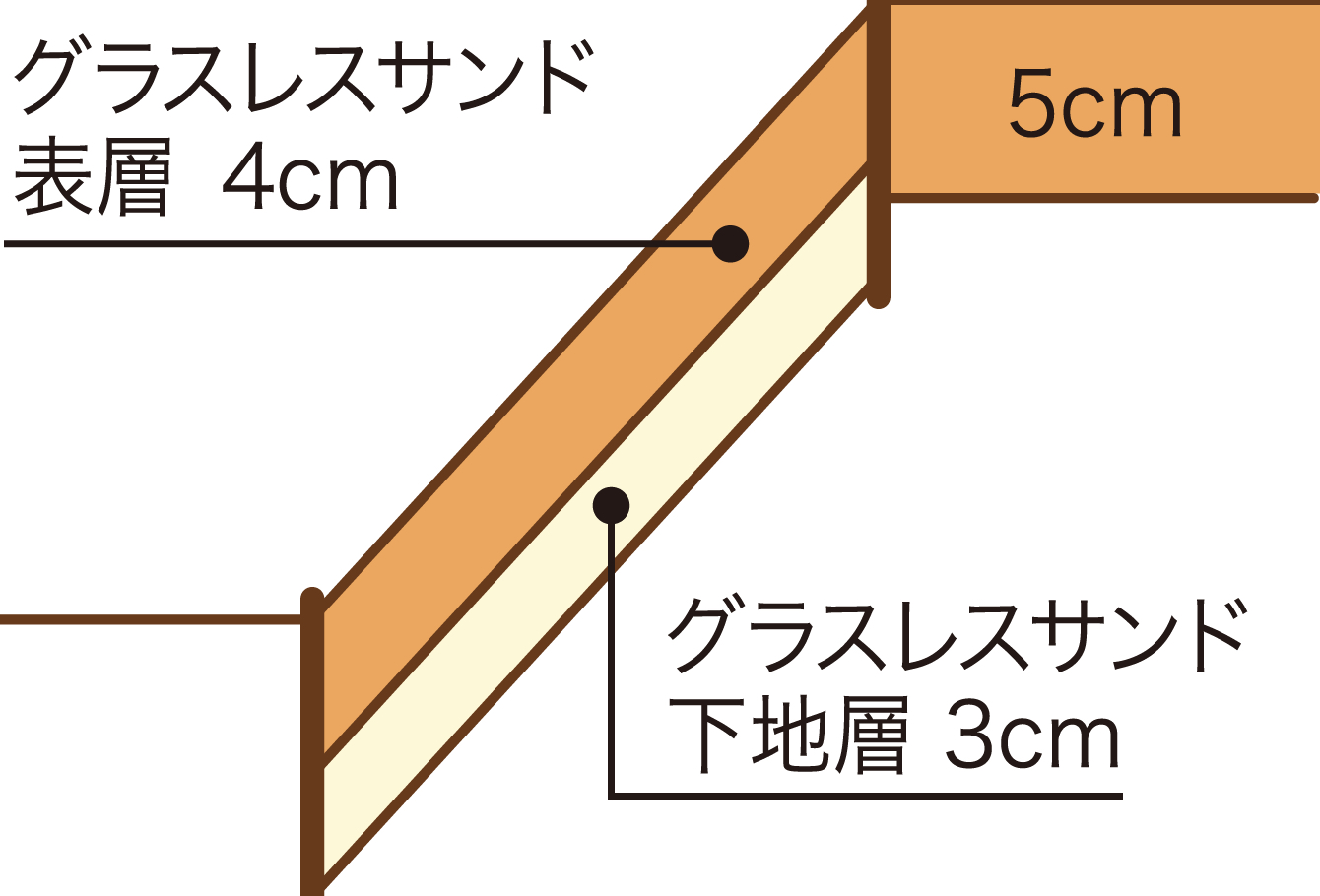 - グラスレスサンドは、表層及び下地層の2層構造で構成されています。