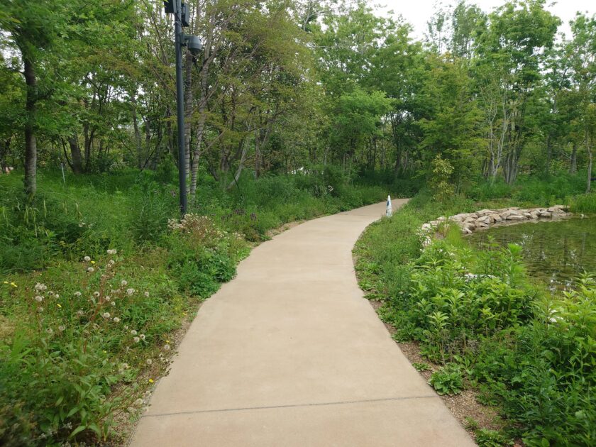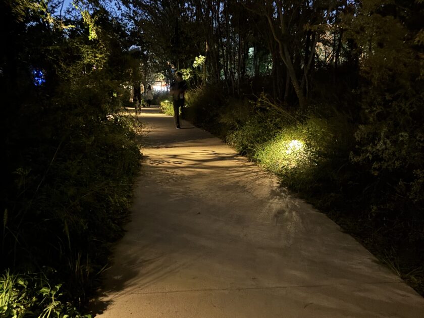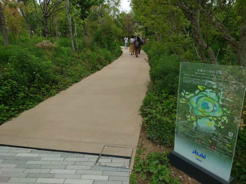 その会場内「静けさの森」で、土系透水性舗装・保水性舗装材エターナルサンドをご採用いただきました。